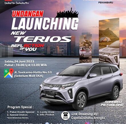 “Kami mengajak masyarakat khususnya sahabat daihatsu untuk datang menghadiri launching Terios facelift ini, besok di showroom capella daihatsu arengka pekanbaru, jalan soekarno hatta sebelum mal ska, mulai pukul 10.00 hingga 13.00 WIB,” kata Yusuf. **Rul
