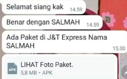 Modus penipuan kurir sempat viral di media sosial akhir tahun lalu. Pelaku berpura-pura menjadi kurir dan mengirimkan lampiran file dengan nama ‘LIHAT Foto Paket’ kepada korban, tapi dalam bentuk apk.