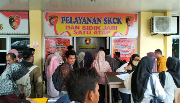 Di Polres Kuansing, tak kurang dari 500 orang pelamar PPPK yang mengantri untuk mendapatkan pelayanan SKCK. Sebagian masyarakat harus meantri di luar gedung.