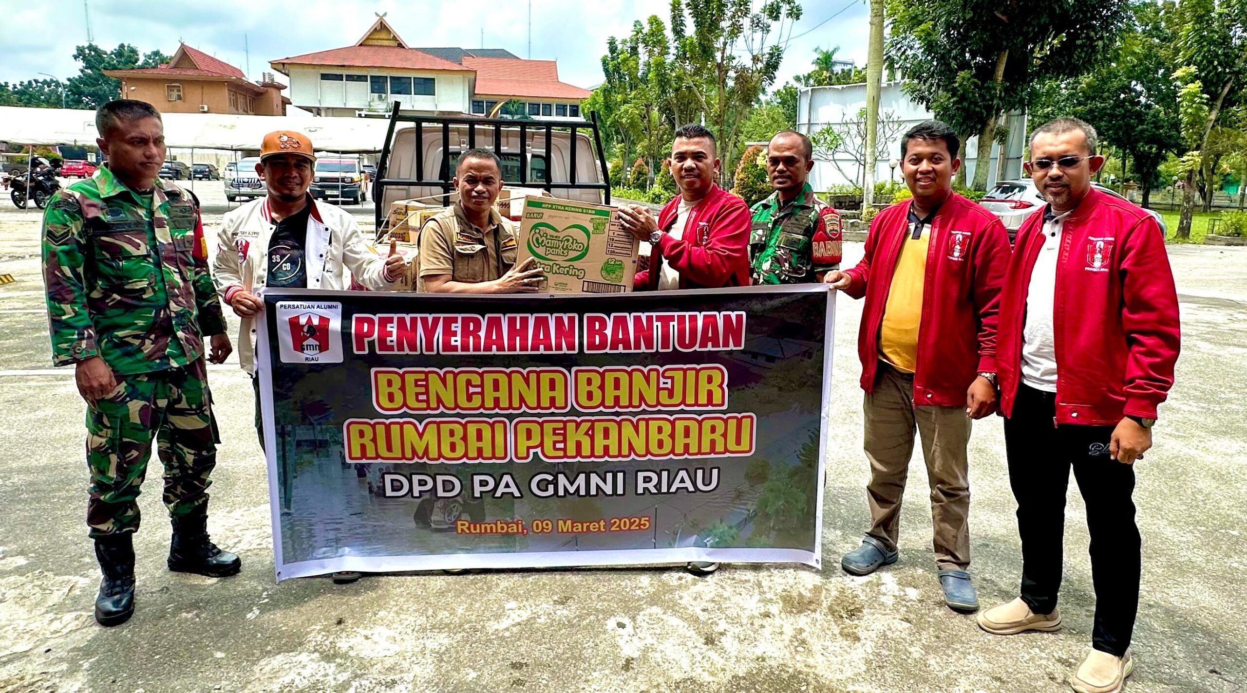 DERAKPOST.COM – Dewan Pengurus Daerah Persatuan Alumni GMNI Provinsi Riau (DPD PA GMNI RIAU) menyerahkan sejumlah bantuan pada warga terdampak banjir besar di Rumbai, Kota Pekanbaru. Kegiatan tersebut dilaksanakan pada hari Minggu, 9 Maret 2025. Bantuan tersebut diperoleh dari para donatur yang menjadi bagian dari keluarga besar Alumni GMNI.