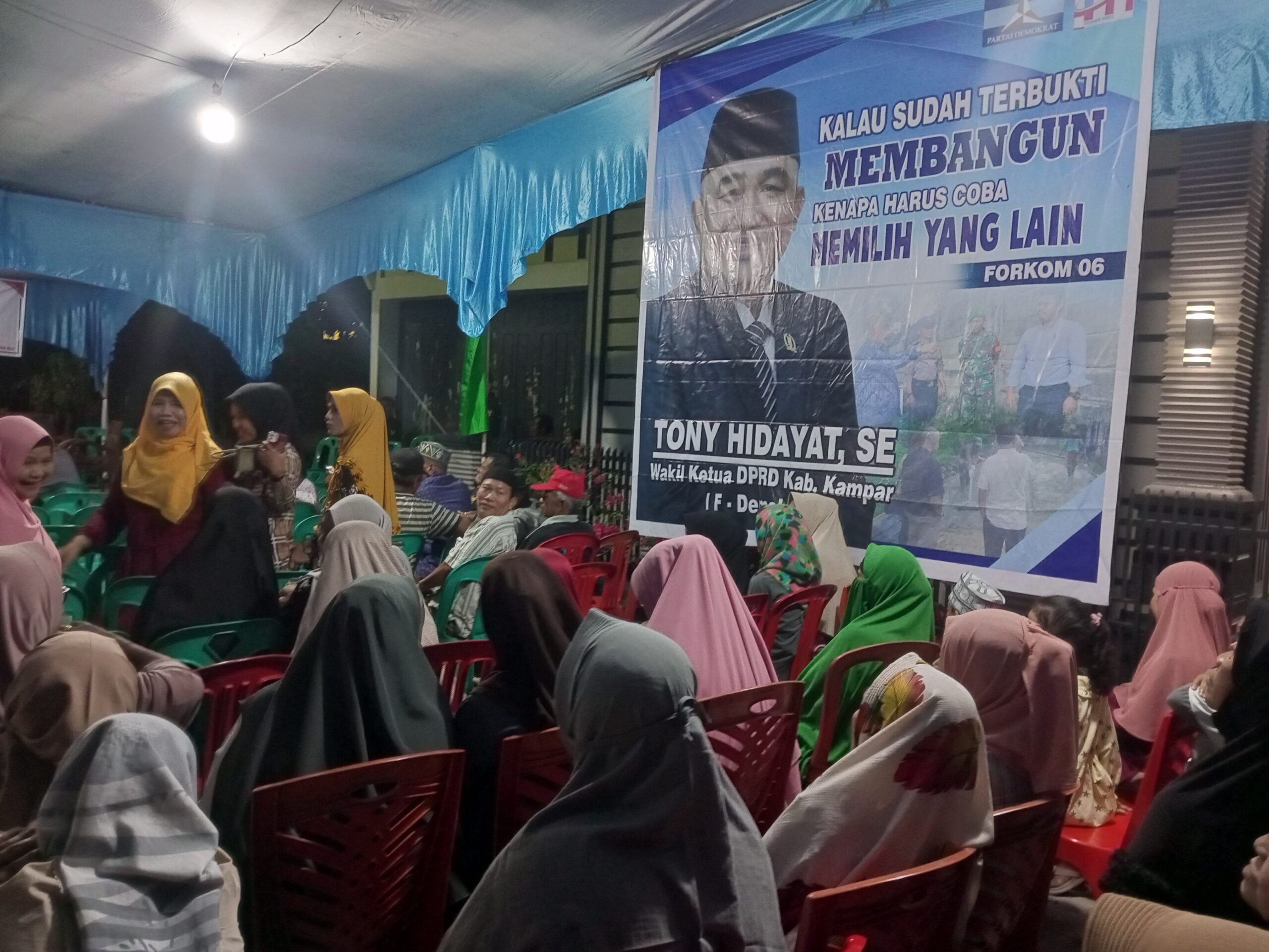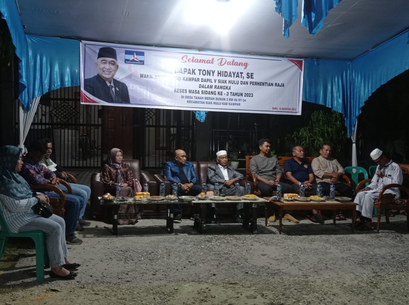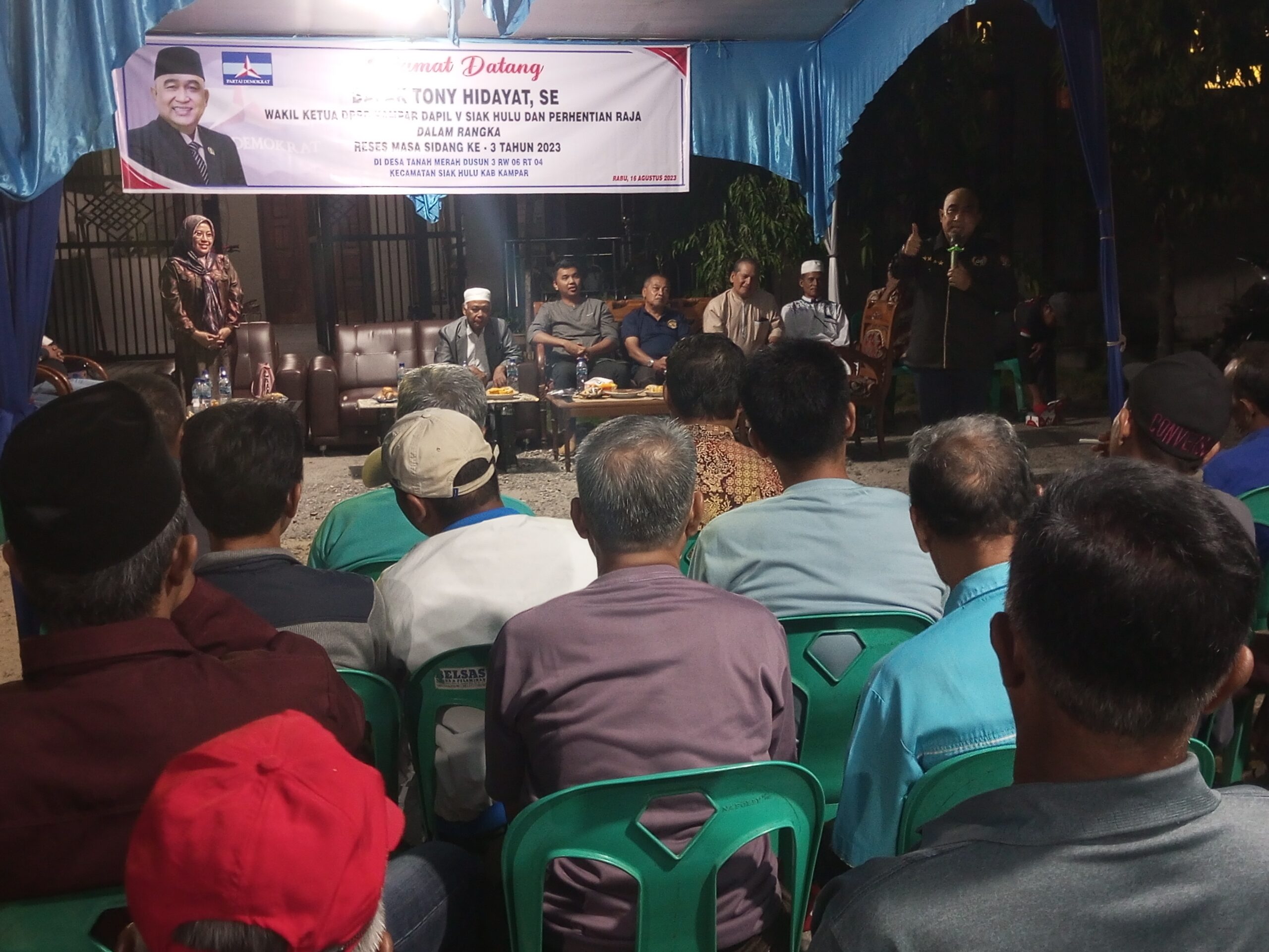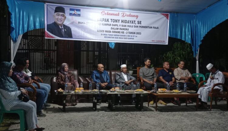 Reses menyerap aspirasi masyarakat di Daerah Pemilihan (Dapil)-nya, hari Rabu (16/8/2023) malam, yang dipusatkan di salah satu rumah warga berada di Jalan Sungkai. Reses kali ini Tony Hidayat ada membawa pejabat OPD yakni dari Dinas Koperasi dan UMKM, Dinas PTSP, serta BPJS Kabupaten Kampar. Yang diharap bisa memberikan jawaban atas keluhan masyarakat.