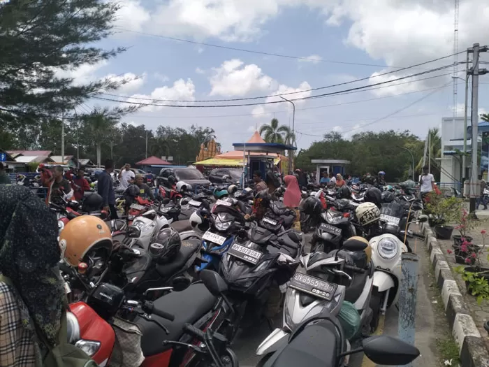 DERAKPOST.COM – Pemudik, di dermaga penyeberangan Ro-Ro Air Putih Bengkalis cukup padat. Begitu pula ini sepeda motor dan mobil menumpuk menunggu antrean untuk menyeberang. Membuat para calon penumpang mengeluh.