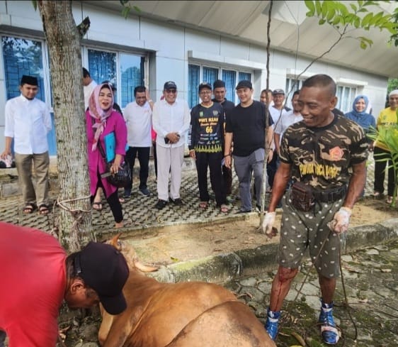 “Penyembelihan hewan kurban ini, selain untuk ibadah, juga untuk mempererat silaturrahmi antar-anggota PWI Riau juga sekaligus mempererat silaturrahmi dengan masyarakat,” kata Zulmansyah. **Rul