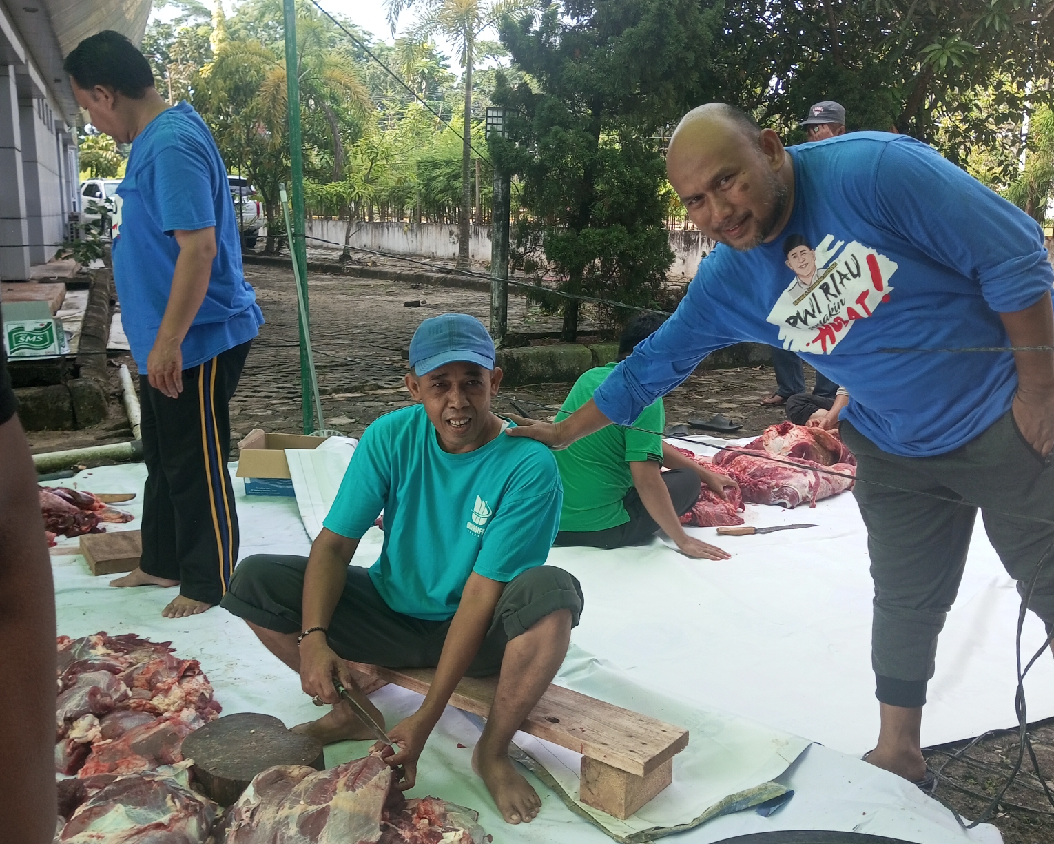 “Penyembelihan hewan kurban ini, selain untuk ibadah, juga untuk mempererat silaturrahmi antar-anggota PWI Riau juga sekaligus mempererat silaturrahmi dengan masyarakat,” kata Zulmansyah. **Rul