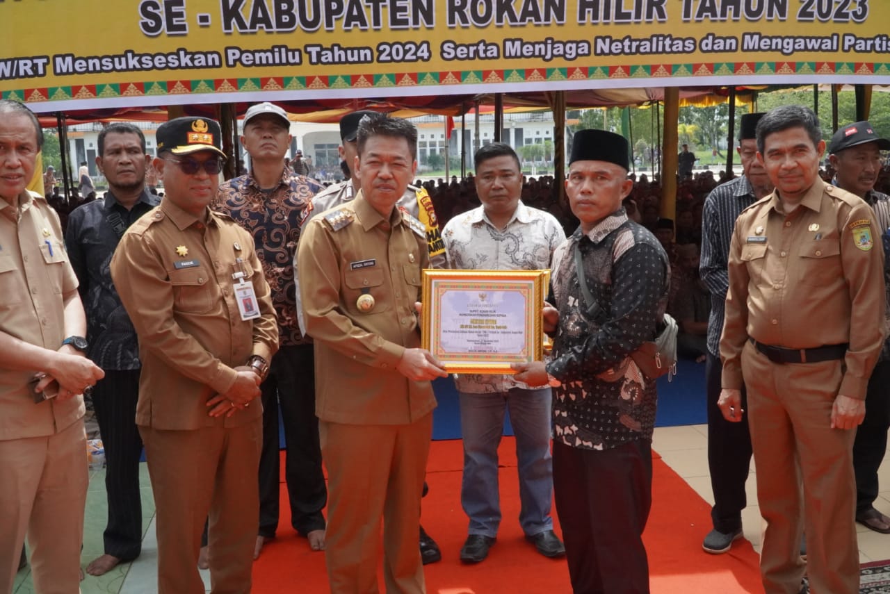 Acara yang mengusung tema ‘Peran RT/RW Menyukseskan Pemilu 2024 serta Menjaga Netralitas dan Mengawal Partisipasi Masyarakat’ dibuka Bupati Rohil, Afrizal Sintong SIP, MSi.