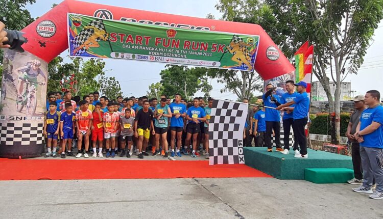 DERAKPOST.COM – Ratusan masyarakat dan pelajar ikuti Fun Run 5K dalam rangka Hari Ulang Tahun (HUT) ke-78 TNI yang diselenggarakan oleh Kodim 0321 Rokan Hilir (Rohil), Sabtu (30/9/2023).