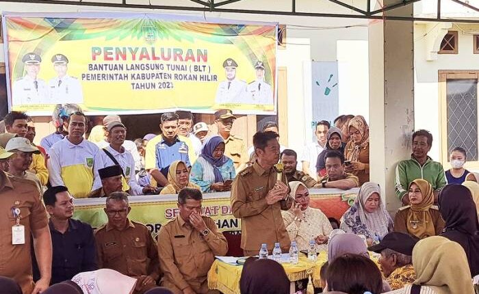 DERAKPOST.COM – Bupati Rokan Hilir (Rohil) Afrizal Sintong in menyalurkan Bantuan Langsung Tunai (BLT). Penyaluran dilakukan secara simbolis kepada masyarakat penerima di kantor Lurah Bagan Barat, Kecamatan Bangko, Senin (4/12/2023).
