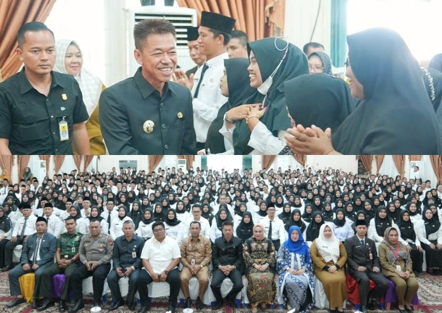 DERAKPOST.COM – Bupati Rokan Hilir (Rohil) Afrizal Sintong SIP secara langsung serahkan SK Pegawai Pemerintah Dengan Perjanjian Kerja (PPPK) tenaga kesehatan formasi tahun 2022 sekaligus pelantikan dan pengambilan sumpah jabatan fungsional guru PNS dan jabatan fungsional PPPK tenaga kesehatan di lingkungan Pemda Rohil, Selasa (27/6/2023).
