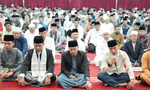 Hadir juga sholat bersama itu Dandim 0321 Rohil Kav Nugraha Yudha Perwiranegara SIp, Sekda Rohil Fauzi Erizal, para asisten Pemkab Rohil dan para kepala OPD serta tuan guru dan Khalifah.