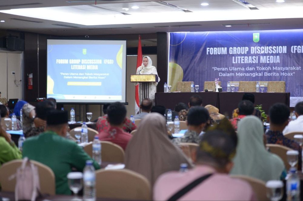 Sekretaris Diskominfotik Provinsi Riau, Sri Mekka membuka FGD Literasi Media. Ia mengatakan, kegiatan ini bertujuan untuk memberikan informasi kepada kalangan masyarakat tetang bahaya berita hoax.