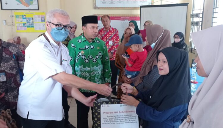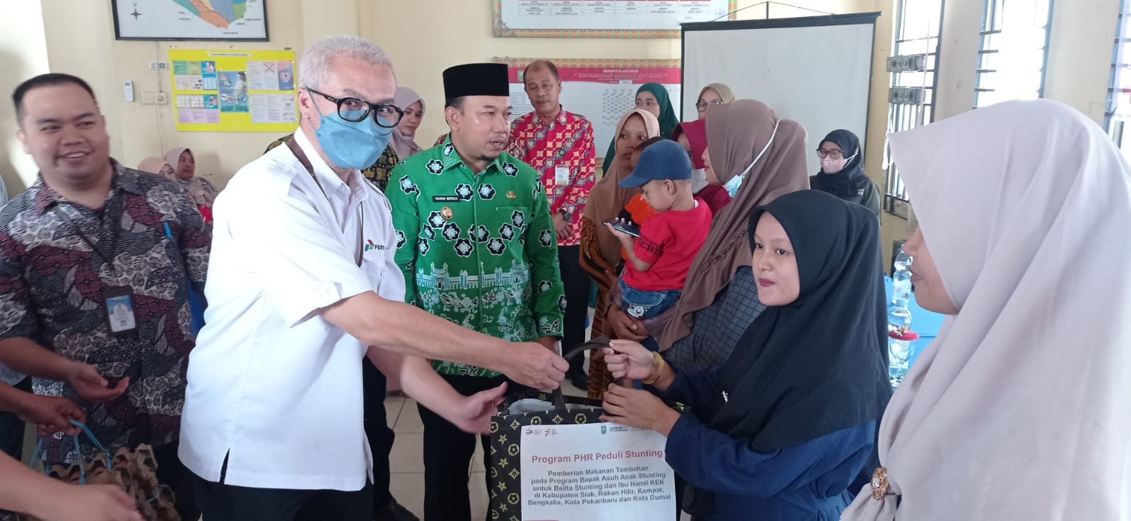 Wakil Bupati Siak Husni Merza mengapresiasi komitmen PHR bersama mitra pelaksana PKBI mendukung program Pemkab Siak menekan angka stunting. Bantuan makanan tambahan dan alat penunjang Posyandu ini diharapkan dapat membantu Pemkab Siak menurunkan angka prevelensi stunting 14 persen sebagaimana yang sudah ditargetkan pemerintah pusat di tahun 2024.