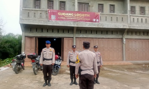 Polsek Bangko melakukan tindakan pengamanan terhadap tempat penyimpanan logistik Pemilu di Jalan Muli Rejo, Kepenghuluan Bagan Punak Meranti, Kecamatan Bangko, Kabupaten Rohil, Kamis (19/10/2023).