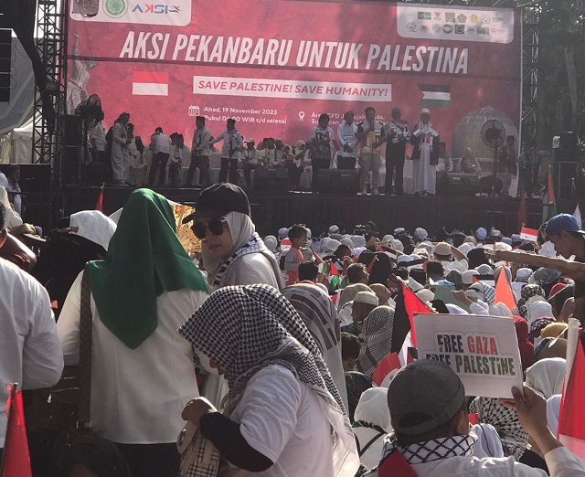 “Palestina adalah negara pertama yang mendukung kemerdekaan Indonesia setelah Mesir. Di dalam undang-undang negara kita pun sudah tertera bahwa kemerdekaan adalah hak segala bangsa maka dari itu, kita seluruh rakyat Indonesia khususnya, jangan ada lagi yang pro-Israel laknatullah. Aksi bela Palestina tidak hanya untuk muslim, melainkan untuk seluruh umat beragama,” ungkap Alfadino, salah satu warga Pekanbaru yang hadir dalam kegiatan aksi. **Rul