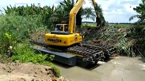 Dikatakannya, saat ini pihaknya tengah menunggu kedatangan ekskavator jenis amphibi yang nantinya berfungsi untuk lakukan pengerukan saat mengapung di medan seperti rawa, lahan basah, serta air dangkal.