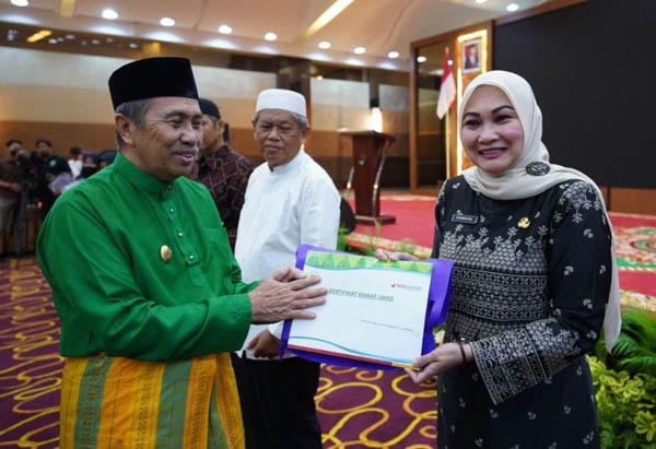 DERAKPOST.COM – Dinas Energi dan Sumber Daya Mineral (ESDM) Provinsi Riau menerima sertifikat dan akta ikrar sebagai OPD terbaik atas pengelolaan wakaf uang. Sertifikat diberi langsung oleh Gubernur Riau (Gubri) Syamsuar.
