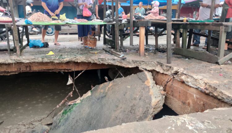 Namun pedagang lainnya yang berada di sekitarnya juga terdampak karena kondisi lantai yang juga sudah rusak dan dikhawatirkan akan ambruk kembali.