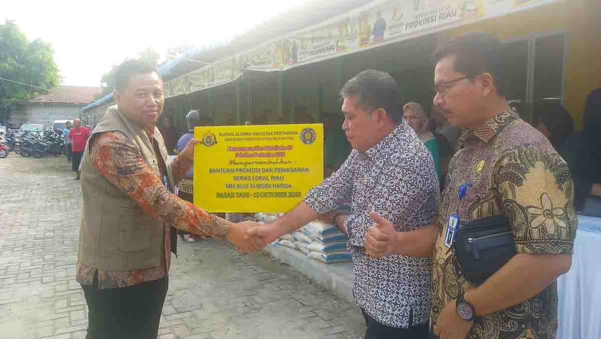 Dia juga menyebut kegiatan ini didukung oleh Ikatan Alumni Fakultas Pertanian Universitas Sumatera Utara (FP USU) Wilayah Riau, dengan ikut mensubsidi harga beras yang dijual yakni sebesar seribu rupiah per kilo gramnya.
