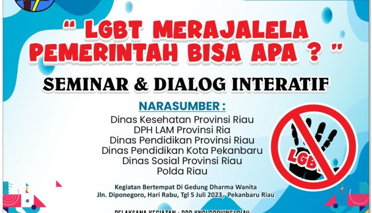 DERAKPOST.COM – Dewan Pengurus Daerah (DPD) Komite Nasional Pemuda Indonesia (KNPI) Provinsi Riau dengan mahasiswa yang tergabung dari Lintas Universitas di Kota Pekanbaru menaja agenda seminar melawan Lesbian Gay Biseksual dan Transgender (LGBT).