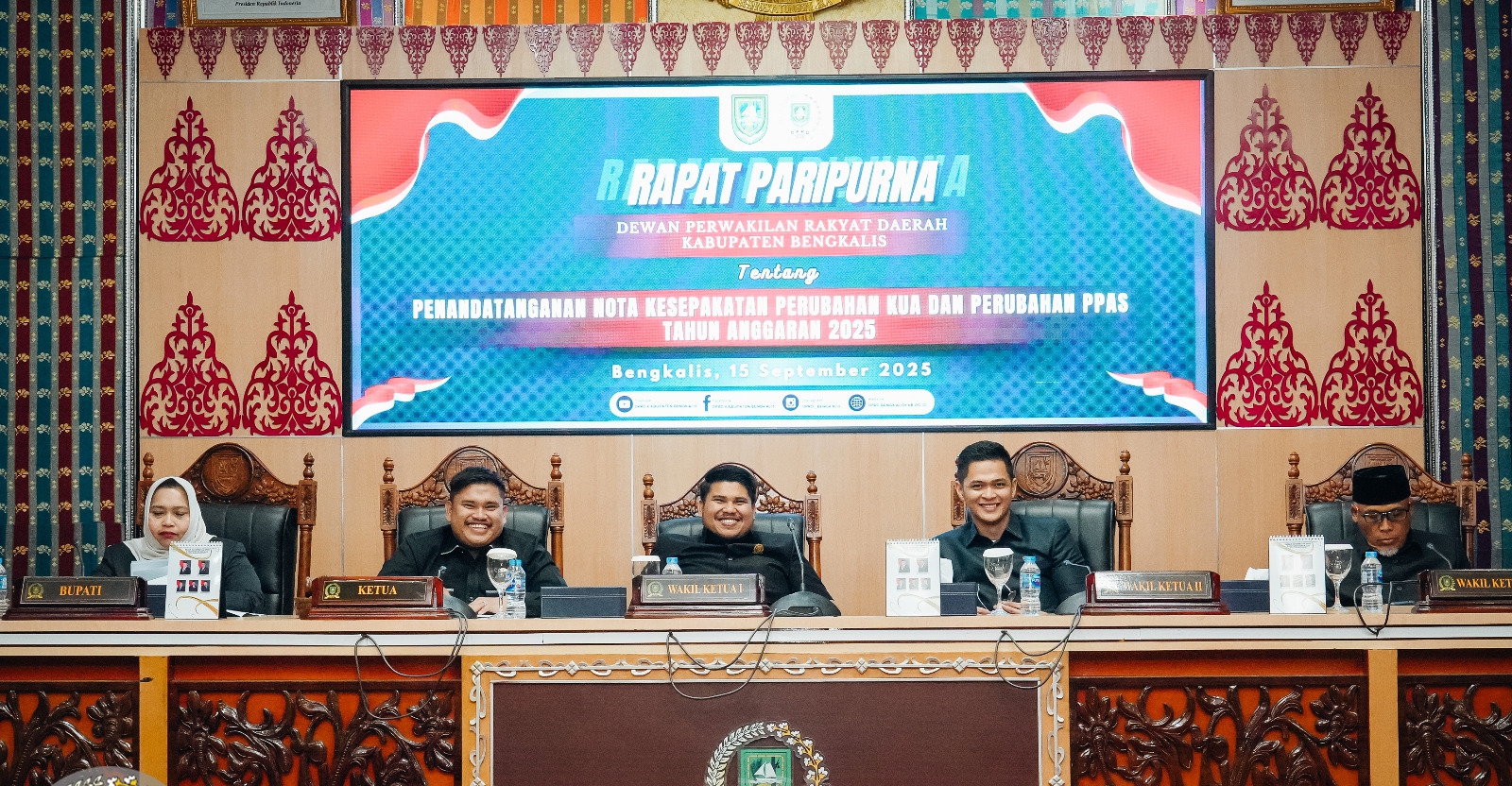 DERAKPOST.COM – DPRD Bengkalis gelar Rapat Paripurna ke-6 Masa Persidangan I Tahun Sidang 2025 dengan agenda utama Penandatanganan Nota Kesepakatan Perubahan Kebijakan Umum Anggaran (KUA) dan Prioritas Plafon Anggaran Sementara (PPAS) Tahun Anggaran 2025, Senin (15/9/2025).