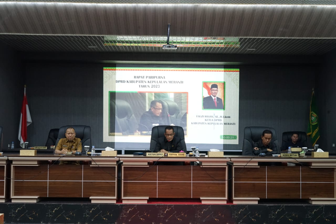 Rapat Paripurna kesepuluh masa persidangan kedua, tahun persidangan 2023 dipimpin oleh Ketua DPRD Kepulauan Meranti, H Fauzi Hasan SIkom didampingi Wakil Ketua H khalid Ali dan dihadiri 19 anggota DPRD itu digelar di Balai Sidang DPRD, Selasa (18/7/2023).