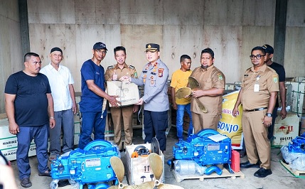 DERAKPOST.COM – Bupati Rokan Hilir (Rohil), Afrizal Sintong bersama Wakapolres Rohil Kompol Ricky Michael Mandey secara simbolis menyerahkan bantuan mesin boat sebanyak 80 unit mesin.