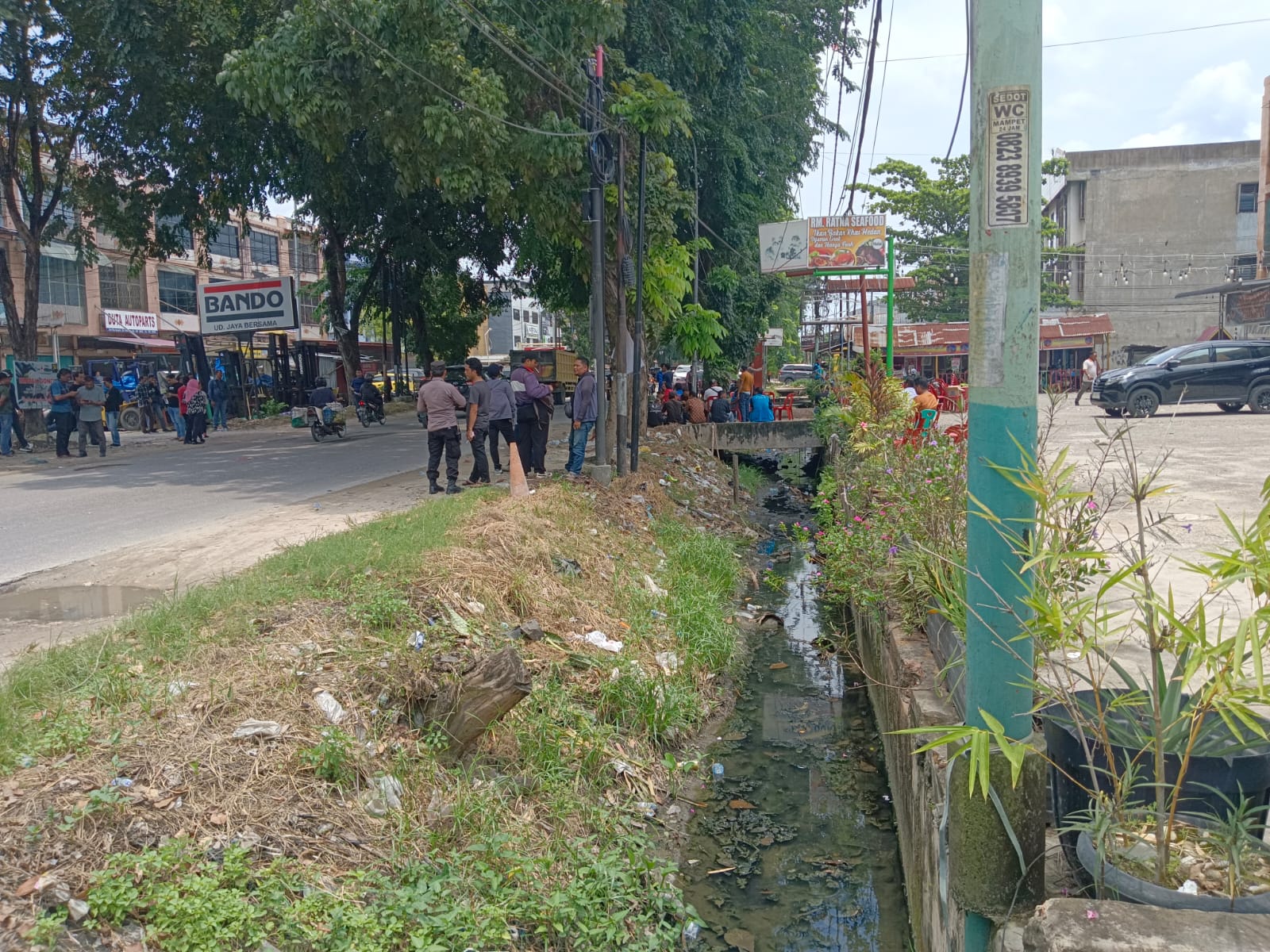 Masih banyak polisi yang berjaga serta ada juga dari dua kubu Ormas berada di lokasi kejadian pasca aksi bentrok yang terjadi tadi. Arus lalu lintas, sudah dapat dilalui pengendara pasca aksi bentrokan yang terjadi tadi. Sebelumnya tidak bisa juga melintasi.