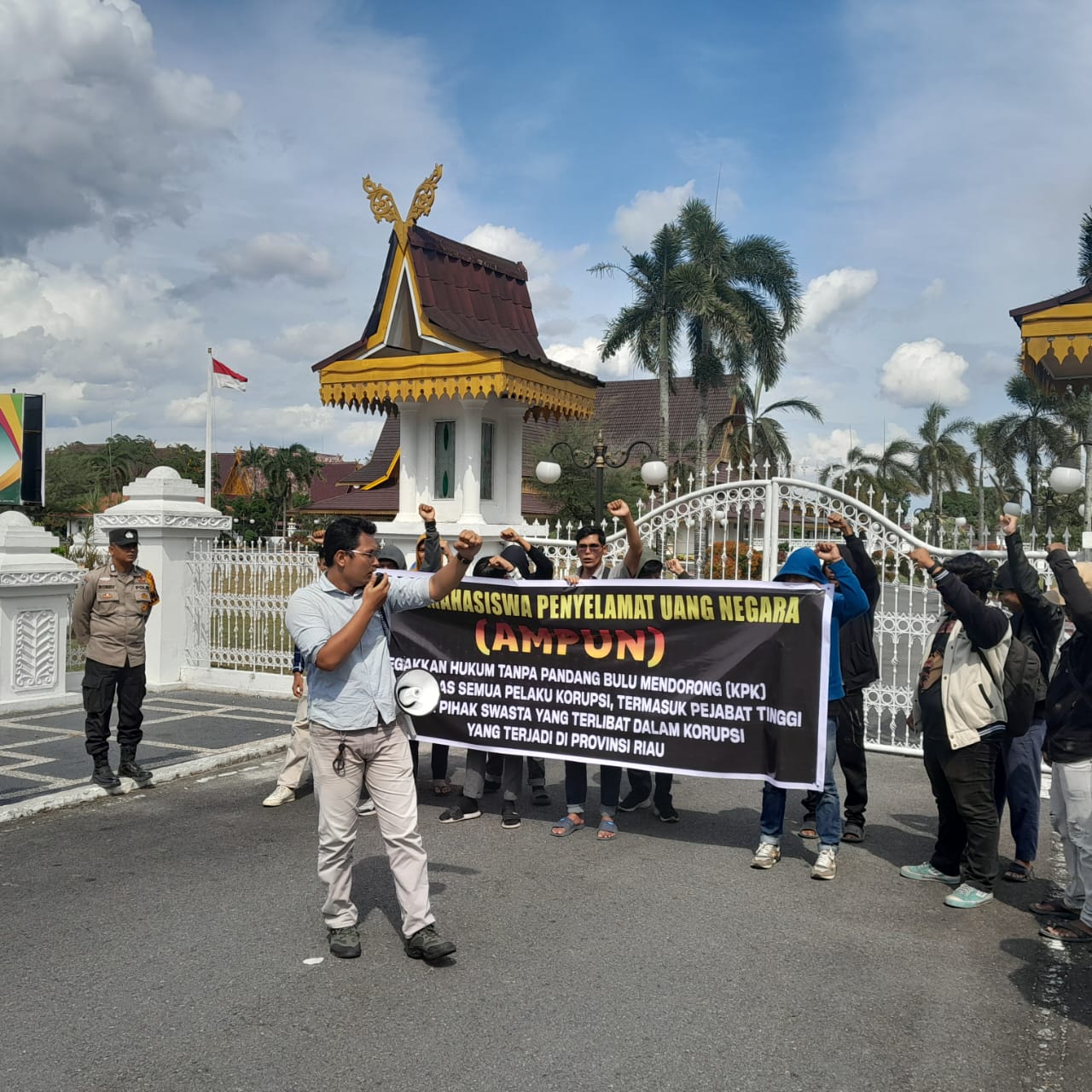 Aliansi Mahasiswa Penyelamat Uang Negara atau sering disebut AMPUN RIAU melaksanakan aksi solidaritas di kediaman Gubernur Provinsi Riau untuk menyatakan sikap berada dibarisan KPK dalam memberantas Korupsi.