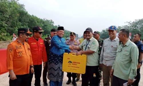 Penyerahan ini bertempat di Jalan Baru Siak – Bunga Raya, Kelurahan Kampung Rempak, Siak Sri Indrapura. Hal itu usai apel akbar untuk kesiapan penanganan Karhutla se -Kabupaten Siak. Diketahui, bahwasa Sambunesia Nozzle ini dari PT Arara Abadi yang merupakan salah satu unit usaha dari APP Sinar Mas.