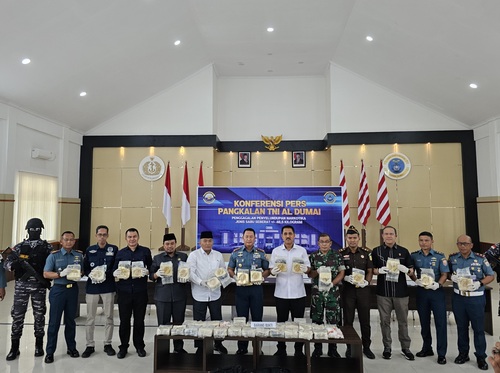 TNI Angkatan Laut, melalui Tim Fleet One Quick Response (F1QR) Pangkalan TNI AL (Lanal) Dumai, berhasil menggagalkan upaya penyelundupan narkotika jenis sabu seberat 48,54 kilogram dari jaringan internasional asal Malaysia.