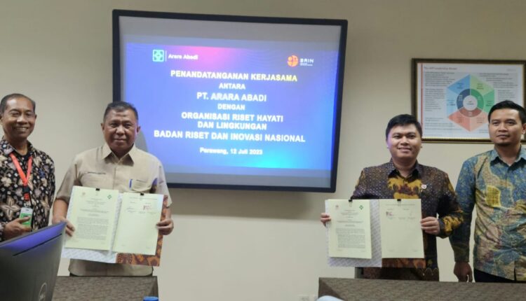 Nota kesepahaman bernomor 16/III/KS/07/2023 – 02/SP – AA/LA/VII/2023, ditandatangani Direktur PT Arara Abadi, Ir H Edie Haris Mz didampingi Head R&D PT Arara Abadi, Dr Ir Budi T, M Agr, Agus Wahyudi APP Sinarmas dan juga Kepala Humas PT Arara Abadi, Herwansyah SH dan Kepala Organisasi Riset Hayati Dan Lingkungan Badan Riset dan Inovasi Nasional (BRIN), Iman Hidayat, PhD yang di dampingi oleh Kepala Pusat Riset Mikrobiologi Terapan Badan Riset Dan Inovasi Nasional (BRIN) Dr. Ahmad Fathoni M. Eng, pada hari Rabu tanggal 12 Juli 2023, di gedung Riset And Development (R&D) PT Arara Abadi.