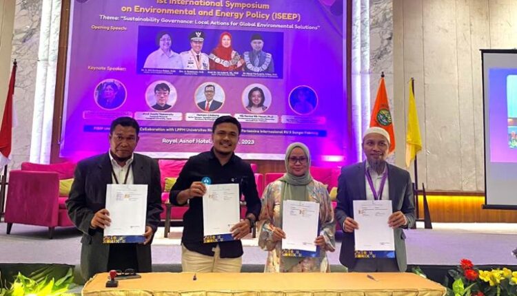 MoU Unri dengan PT HAS dan Al Ahmadi dilangsungkan di tengah-tengah Kegiatan “1st International Symposium on Environmental and Rnergy Policy (ISEEP)” yang diselenggarakan oleh FISIP Unri, Rabu (4/10/23).