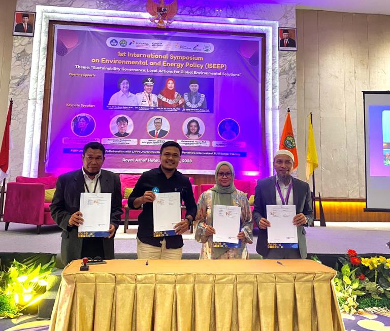 MoU Unri dengan PT HAS dan Al Ahmadi dilangsungkan di tengah-tengah Kegiatan “1st International Symposium on Environmental and Rnergy Policy (ISEEP)” yang diselenggarakan oleh FISIP Unri, Rabu (4/10/23).