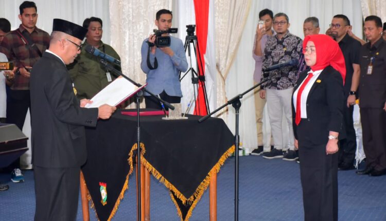 DERAKPOST.COM – Pj Bupati Kampar, Muhammad Firdaus, resmi melantik Ramlah, sebagai Pj Sekretaris Daerah Kabupaten Kampar di Aula Rumah Dinas Bupati Kampar Bangkinang, Jumat (23/6/2023).