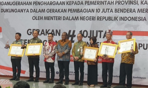 Kemendagri memberikan penghargaan kepada 19 kepala daerah level gubernur dan walikota/bupati. “Ini sebagai bentuk penghargaan dari Kemendagri dianggap menyukseskan kegiatan pembagian 10 juta bendera, ada beberapa kriteria yang dibuat Kemendagri, dan kita tidak tau, sehingga kita terpilih satu diantara lima walikota yang ada di indonesia,” ujar Syoffaizal.