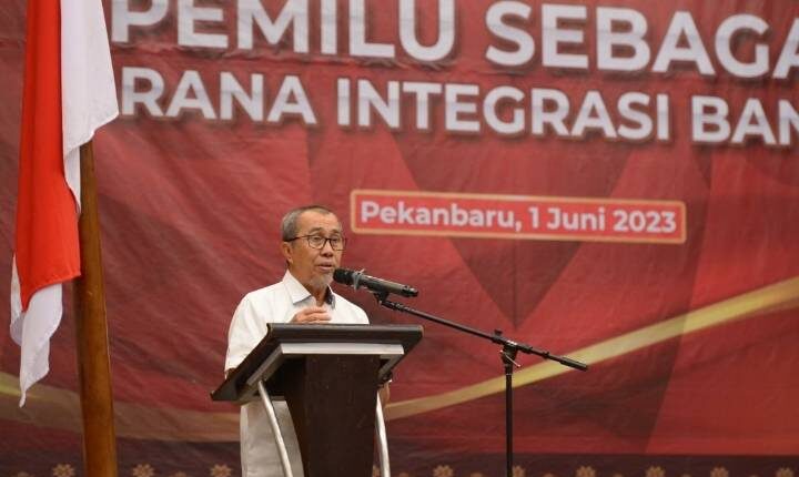 Hal itu disampaikan Gubri Syamsuar saat Seminar Kebangsaan dengan tema Pemilu Sebagai Sarana Integrasi Bangsa yang diselenggarakan oleh BEM se-Riau, di Hotel Aryaduta Pekanbaru, Kamis (1/6/2023).