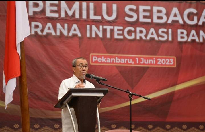 Hal itu disampaikan Gubri Syamsuar saat Seminar Kebangsaan dengan tema Pemilu Sebagai Sarana Integrasi Bangsa yang diselenggarakan oleh BEM se-Riau, di Hotel Aryaduta Pekanbaru, Kamis (1/6/2023).