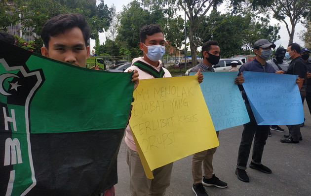 Mereka menuntut penyidik Kejati Riau mengusut tuntas kasus dugaan korupsi Pelaksana Harian (Pln) Sekdaprov Riau Masrul Kasmy, sewaktu yang bersangkutan menjabat Wakil Bupati Kepulauan Meranti.