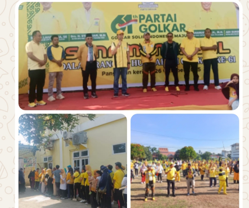HUT ke-61 Partai Golkar di Pelalawan Diawali Dengan Senam Massal dan Berbagi Sembako