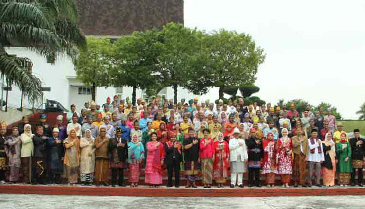 Jadi konsepnya untuk bapak-bapak Direksi dan Kepala Bagian mengenakan seragam tradisional Nusantara. Sementara 145 karyawan mengenakan seragam Teluk Belanga Melayu lengkap dengan songket dan tanjaknya,” jelasnya.