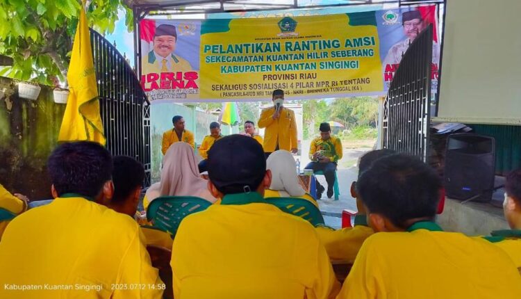 DERAKPOST.COM – Bertempat halaman rumah warga Kecamatan Kuantan Hilir Seberang, Kabupaten Kuantan Singingi (Kuansing), Anggota DPR RI Idris Laena menaja Sosialisasi Empat Pilar MPR RI. Kegiatan diikuti oleh kader muda Satkar Ulama Indonesia di daerah setempat.