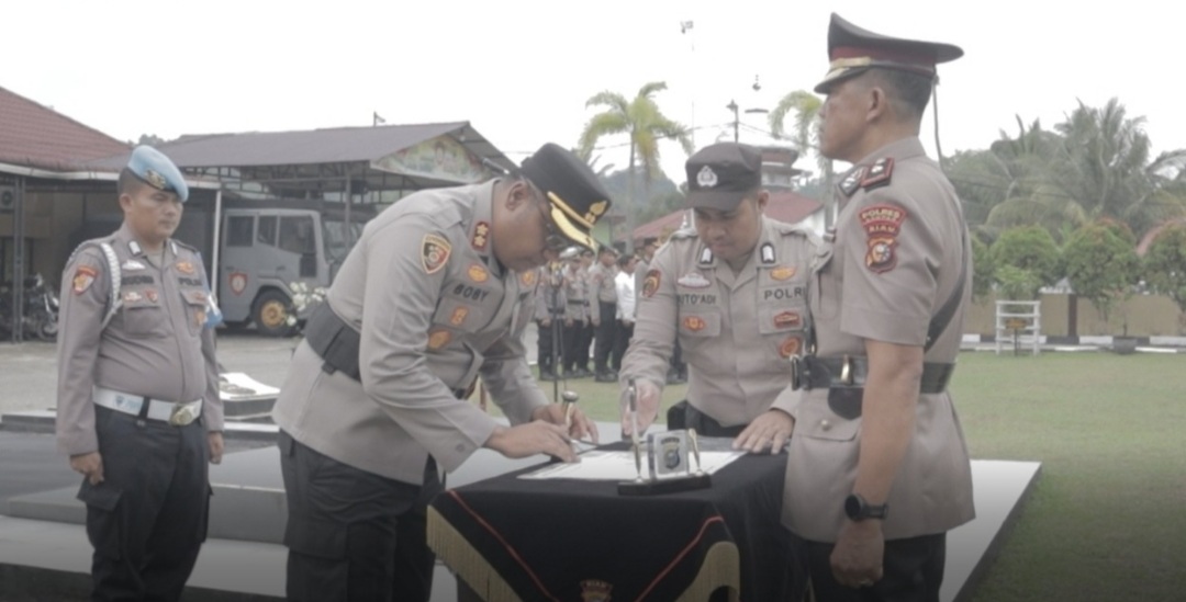 Dalam upacara itu pergantianya sejumlah pejabat strategis, meliputi Kasat Reskrim, Kapolsek Tapung, Kapolsek Siak Hulu, dan Kapolsek Kampar Kiri Hilir. Sertijab itupun, ditandai dengan hal pengambilan sumpah jabatan dan penandatanganan berita acara serta pakta integritas.