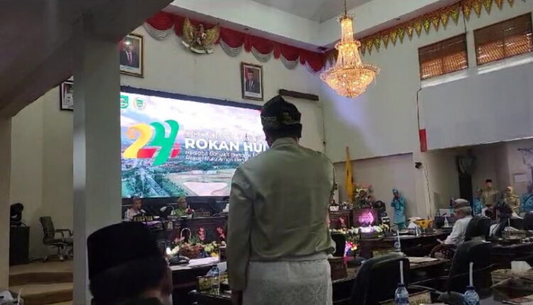 DERAKPOST.COM – Mantan atau eks Bupati Rokan Hulu (Rohul) Suparman meradang pada saat Rapat Paripurna HUT ke-24 Kabupaten ini. Aksi darinya Suparman ini, yang menarik perhatian semua peserta rapat.