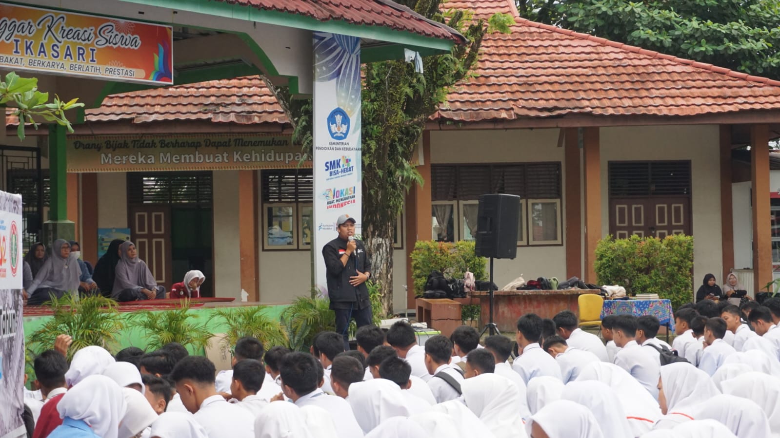 Dalam sambutannya, Kepala Sekolah SMK Farmasi Ikasari, Bapak Endria Erman, S.Si, menyampaikan apresiasi atas kedatangan IZI dalam kegiatan yang penuh makna ini. Beliau menyatakan, “Kita bersyukur bisa dikunjungi oleh IZI dalam kegiatan mini konser dan penggalangan dana untuk saudara kita di Palestina. Kenapa kita bersyukur? Karena tidak semua sekolah didatangi oleh IZI. Ini kesempatan kita untuk mengumpulkan pundi-pundi amal. Semoga saudara kita di Palestina diberikan kekuatan dan kemenangan. Maka, untuk kesempatan ini, kita gunakan dengan sebaik-baiknya.”