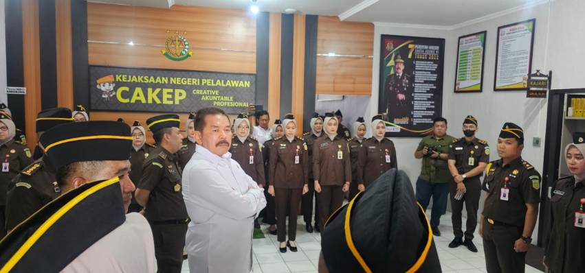 Kajari Pelalawan Azrijal, didampingi para kepala seksi dan pegawai.