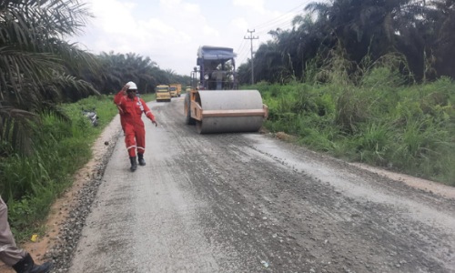 EMP Bentu Ltd menyediakan material berupa base A sementara PT RSS menyumbangkan sejumlah alat berat untuk memperbaiki jalan yang rusak parah ini.