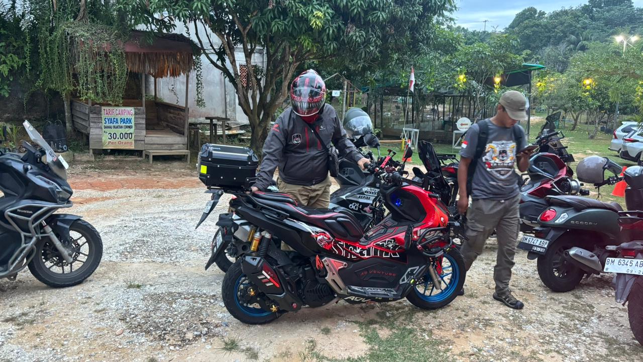 Perjalanan kemudian ditutup dengan camping bersama di area Danau Khayangan. Suasana alam yang tenang menjadi tempat ideal untuk berkumpul, berbagi pengalaman, melakukan gathering night, hingga menikmati kebersamaan antar pecinta Honda ADV 160.