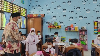 Rusydi sendiri sejak pagi langsung melakukan mengawasi siswa-siswi MIN 1 saat masuk sekolah. Rusdy juga langsung melakukan inspeksi ke kelas agar tetap memakai masker. **Fri/Rul