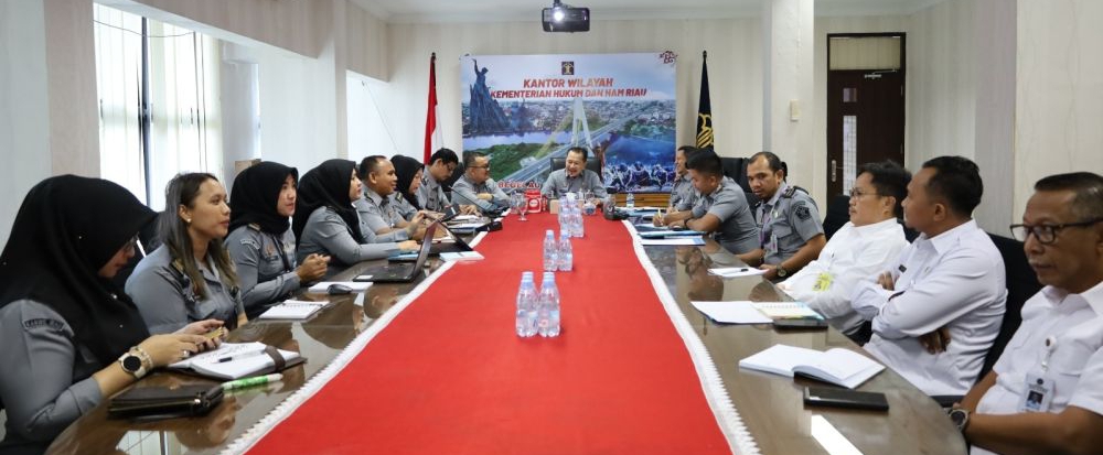 Kepala Kanwil Kemenkumham Riau, Nur Ichwan, memimpin langsung rapat. Turut dihadiri Plt Kepala Kanwil Ditjen Pemasyarakatan Riau, Muhammad Lukman; Plh. Kepala Kanwil Ditjen Imigrasi Riau, Habiburrahman,.serta perwakilan Kementerian HAM Riau, Jenni Manalu.