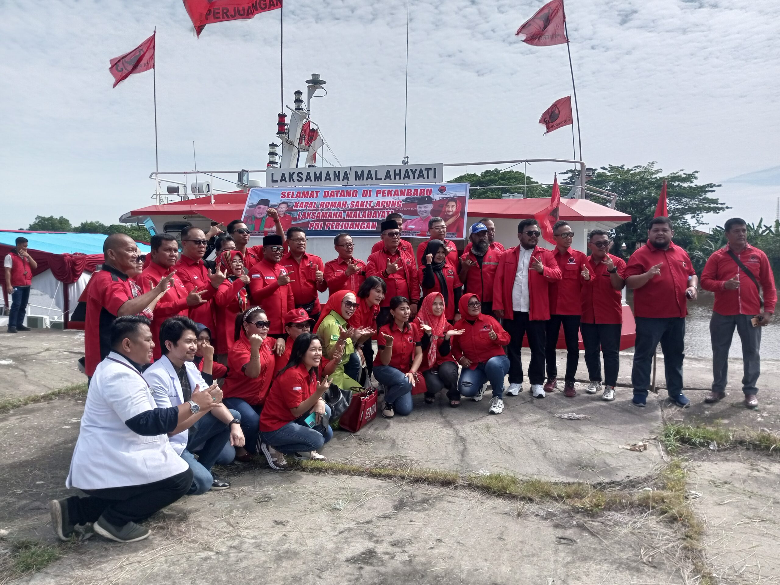 Kapal Rumah Sakit Apung Laksamana Malahayati milik PDIP, pada hari Jumat (21/7/2023), kini bersandar Pelabuhan Pelindo Pekanbaru. Kapal hadir, tujuan memberi pengobatan gratis ini kepada masyarakat kurang mampu, yang jauh fasilitas kesehatan, khususnya daerah pesisir.