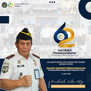 DERAKPOST.COM – Sempena memperingat Hari Bakti Pemasyarakatan (HBP) ke-62 yang jatuh pada Senin 27 April 2026, Keluarga Besar Lembaga Pemasyarakatan (Lapas) Narkotika Rumbai menyampaikan ucapan selamat sekaligus menegaskan komitmen dalam meningkatkan kualitas pelayanan kepada masyarakat.
